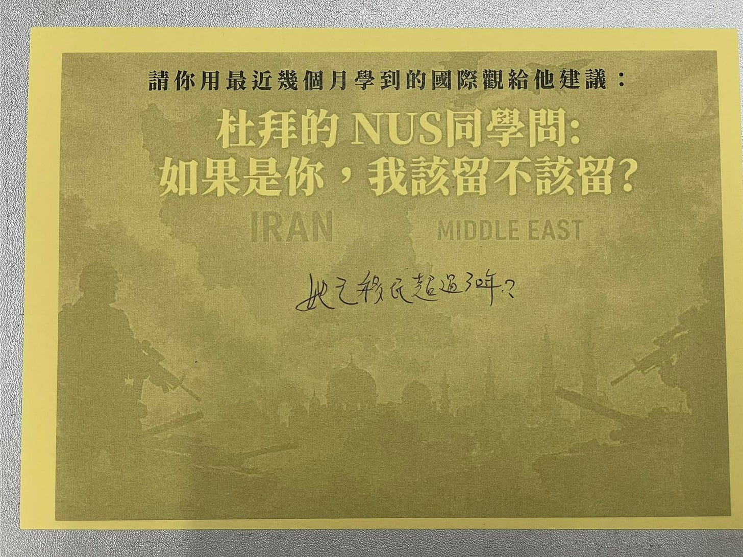 如果你是那位杜拜同學,該留或不該留?